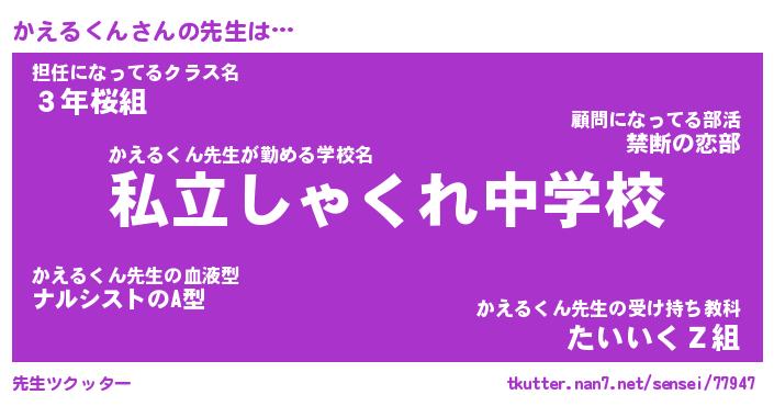 | ヒーロー風カッコイイあだ名 | 『スーパーカエルクン』『幻影騎士カエ』 |