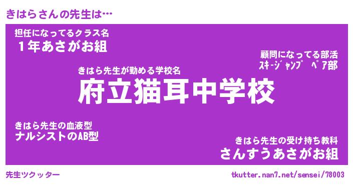 | ヘコむあだ名 | 『きはにー』『牛乳』『きはっぺ』 |