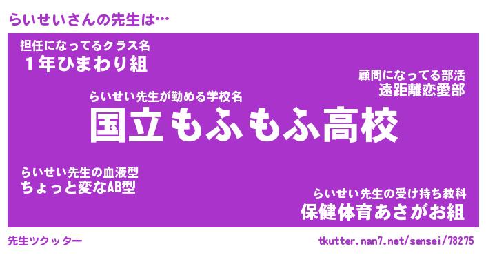 | 意味不明あだ名 | 『ペロリンらいせい』『永久保存らいせい』 |