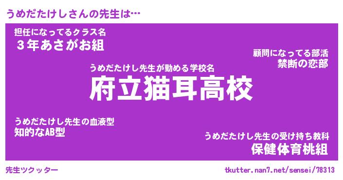 | ヒーロー風カッコイイあだ名 | 『スーパーウメダタケシ』『銀牙騎士ウメ』 |
