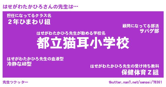 | ポケモン風あだ名 | 『ハセチュウ』『ハセガダネ』 |
