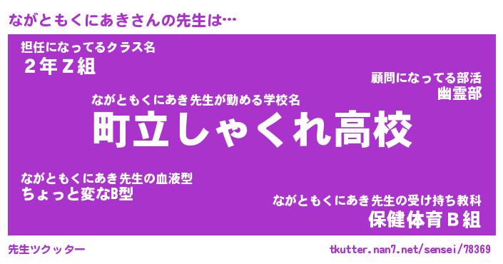 | 伝説のあだ名 | 『封印されしスナイパーながともくにあき』 |