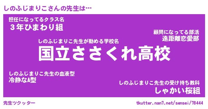 | 男性向けラノベタイトル風あだ名 | 『しのふじまりこの憂鬱』 |