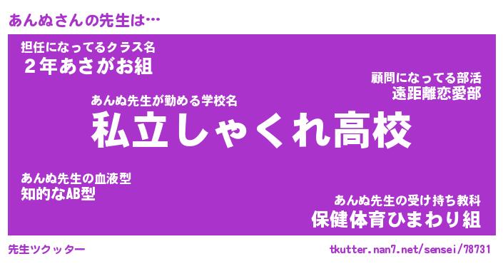 | ヒーロー風カッコイイあだ名 | 『スーパーアンヌ』『ウルトラあんぬマン』 |