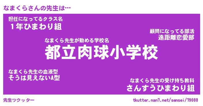 | ヘコむあだ名 | 『なまふぇ~』『つくし』『なま太郎』 |