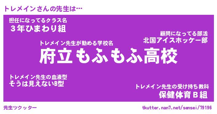 | ツイッター | トレメインさんのツイッターID『namakemono_idle』 |