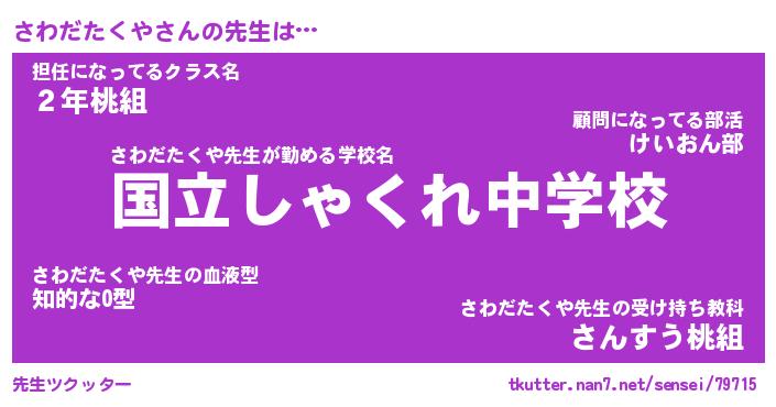 | ヒーロー風カッコイイあだ名 | 『スーパーサワダタクヤ』『黄金騎士サワ』 |