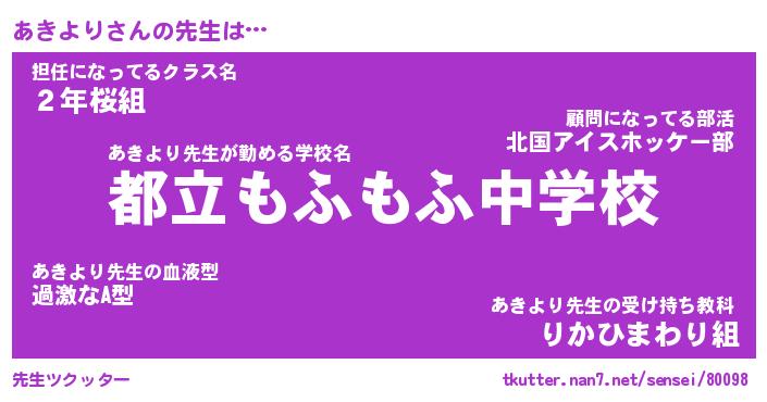 | 意味不明あだ名 | 『ペロリンあきより』『永久保存あきより』 |