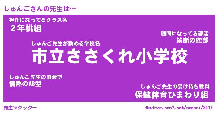 | ヒーロー風カッコイイあだ名 | 『スーパーシュンゴ』『魔戒騎士シュ』 |