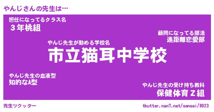 | ピコ太郎風あだ名 | 『ヤコ太郎』『ピヤ十郎』『ヤン三郎』 |