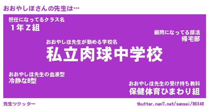 | ファンタジー風あだ名 | 『オオフェル』『エターナルオオヤシホー』 |