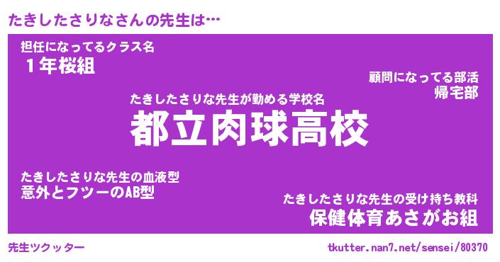 | 胡散臭い通販商品みたいなあだ名 | 『モテモテ間違いなし水晶球…その名も「たきしたさりな」』 |
