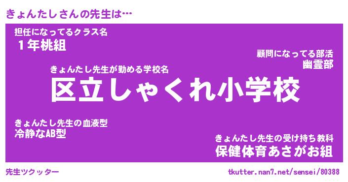 | ヒーロー風カッコイイあだ名 | 『スーパーキョンタシ』『銀牙騎士キョ』 |