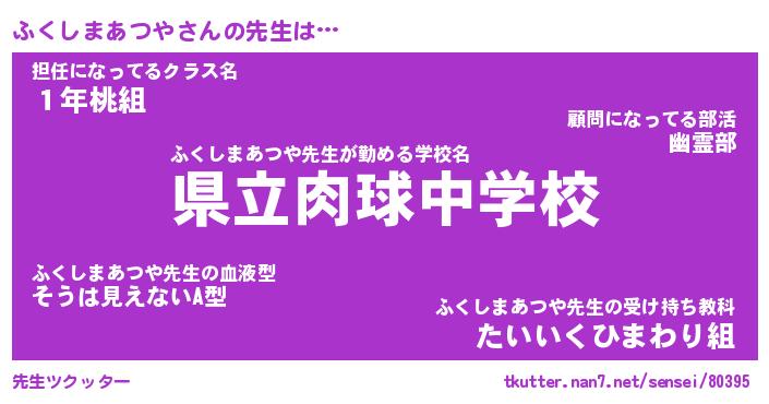 | 男性向けラノベタイトル風あだ名 | 『ふくしまあつやの憂鬱』 |