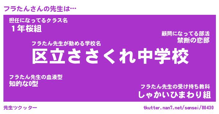 | 欧米人風あだ名 | 『マイケルフラたん』『ウサインフラたん』 |