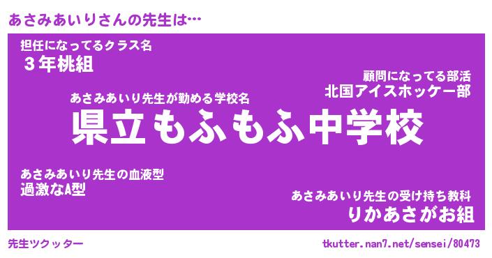 | ポケモン風あだ名 | 『アサチュウ』『アサミダネ』 |