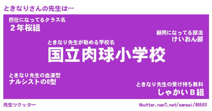 | 意味不明あだ名 | 『ペロリンときなり』『永久保存ときなり』 |