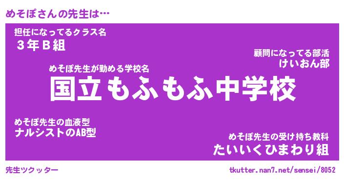 | ファンタジー風あだ名 | 『メソフェル』『エターナルメソポー』 |