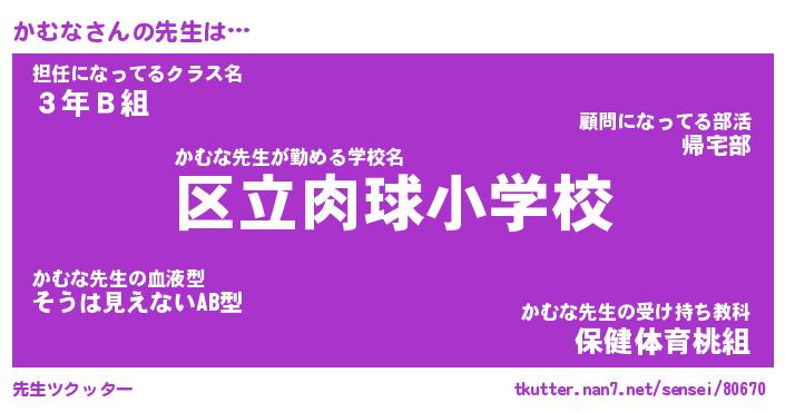 | ヒーロー風カッコイイあだ名 | 『スーパーカムナ』『ウルトラかむなマン』 |