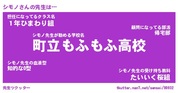| ヒーロー風カッコイイあだ名 | 『スーパーシモノ』『ウルトラシモノマン』 |