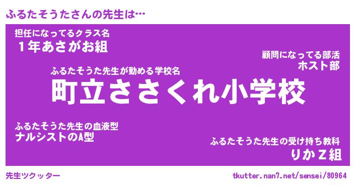 | ヒーロー風カッコイイあだ名 | 『スーパーフルタソウタ』『魔戒騎士フル』 |