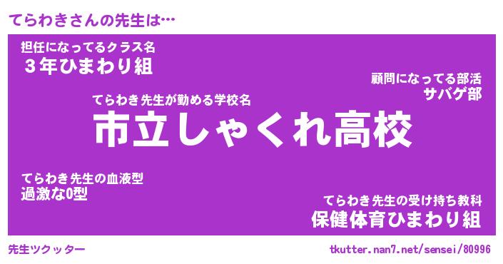 | 意味不明あだ名 | 『ペロリンてらわき』『永久保存てらわき』 |