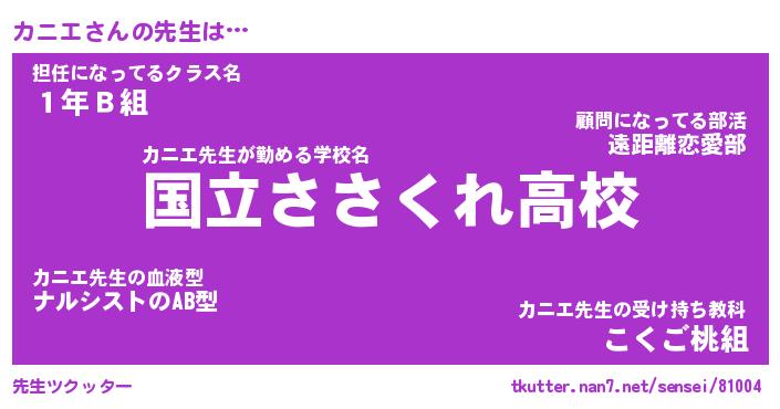 | ヘコむあだ名 | 『カニもー』『つくし』『カニぷりん』 |