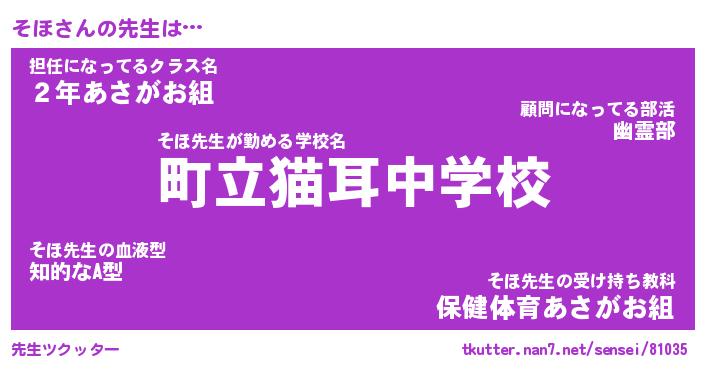 | 意味不明あだ名 | 『ペロリンそほ』『そほフォーエバー』 |