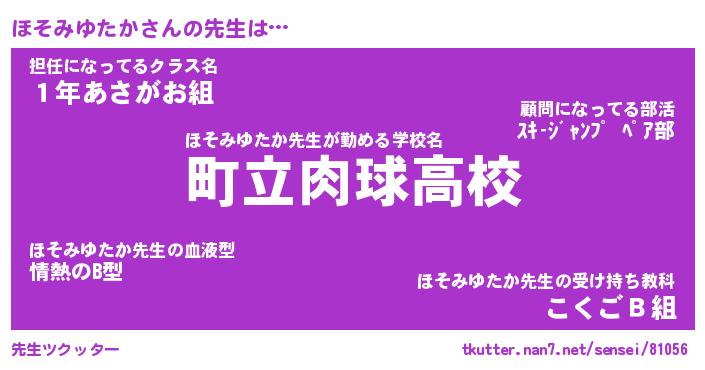 | ヒーロー風カッコイイあだ名 | 『スーパーホソミユタカ』『黄金騎士ホソ』 |
