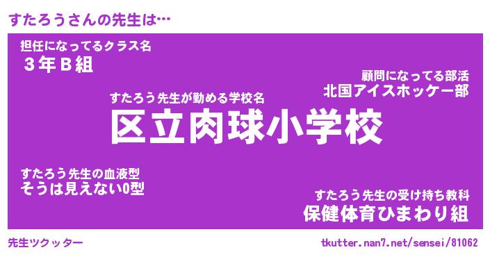 | 意味不明あだ名 | 『ペロリンすたろう』『永久保存すたろう』 |