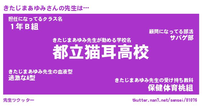 | 恥ずかしいあだ名 | 『プリティーきたじまあゆみ』『きたちん』 |