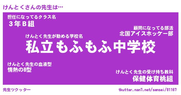 | ヘコむあだ名 | 『けんにゅー』『酢こんぶ』 |