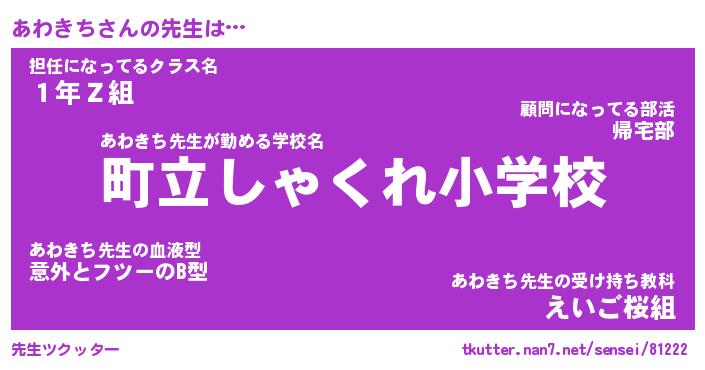 | 意味不明あだ名 | 『ペロリンあわきち』『永久保存あわきち』 |