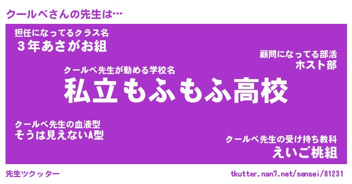 | ファンタジー風あだ名 | 『クーフェル』『エターナルクールベー』 |