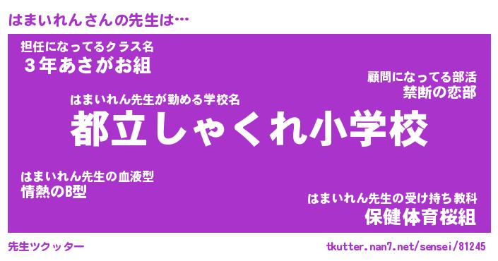 | ヘコむあだ名 | 『はまっふぃ~』『つくし』 |
