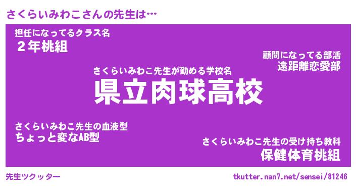 | 意味不明あだ名 | 『ペロリンさくらいみわこ』 |