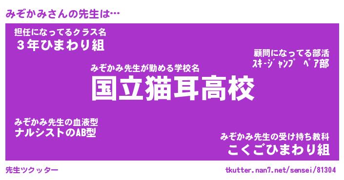 | 意味不明あだ名 | 『ペロリンみぞかみ』『永久保存みぞかみ』 |