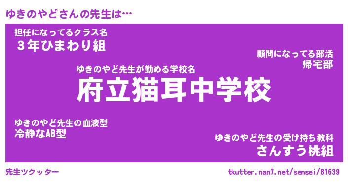 | ファンタジー風あだ名 | 『ユキフェル』『エターナルユキノヤドー』 |