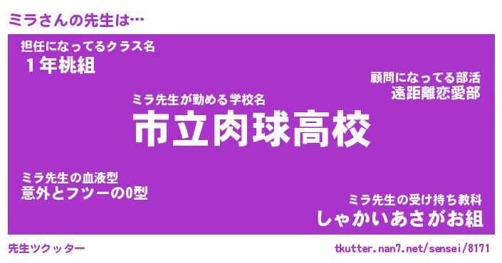 | 意味不明あだ名 | 『ペロリンミラ』『ミラフォーエバー』 |