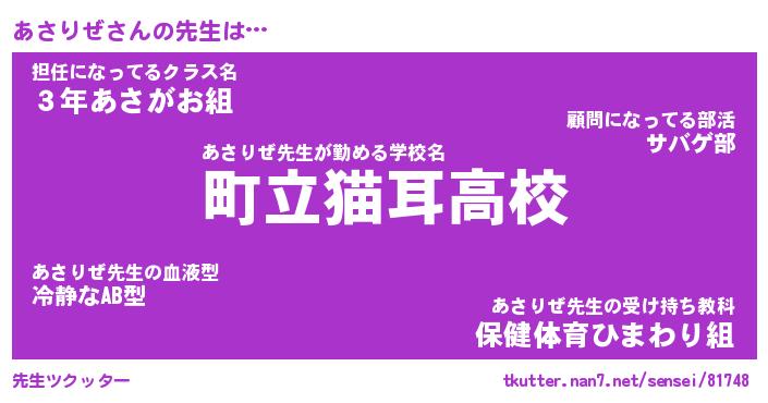 | ファンタジー風あだ名 | 『アサフェル』『エターナルアサリゼー』 |