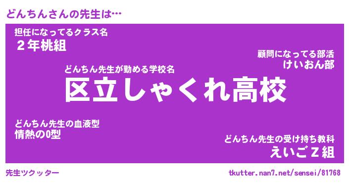 | 意味不明あだ名 | 『ペロリンどんちん』『永久保存どんちん』 |