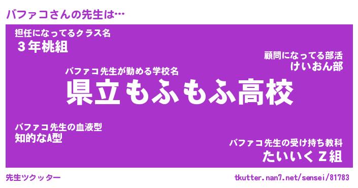 | ファンタジー風あだ名 | 『バフフェル』『エターナルバファコー』 |