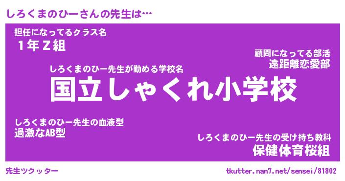 | 伝説のあだ名 | 『伝説のスナイパーしろくまのひー』 |