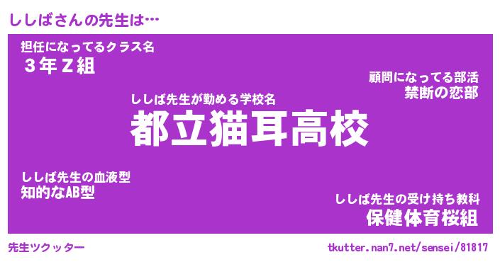 | ヒーロー風カッコイイあだ名 | 『スーパーシシバ』『ウルトラししばマン』 |