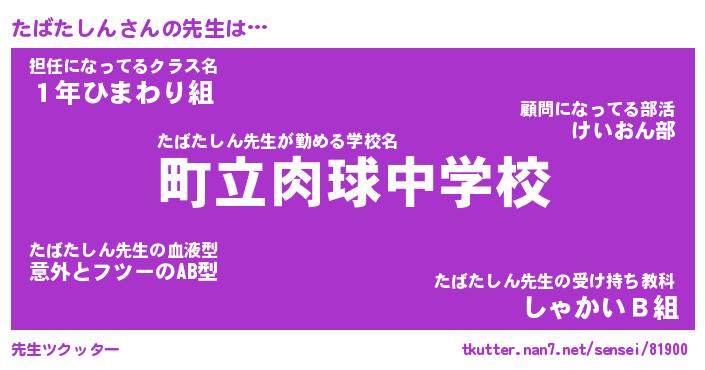 | ファンタジー風あだ名 | 『タバフェル』『エターナルタバタシンー』 |