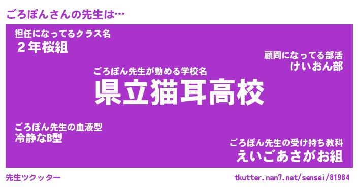 | ファンタジー風あだ名 | 『ゴロフェル』『エターナルゴロポンー』 |