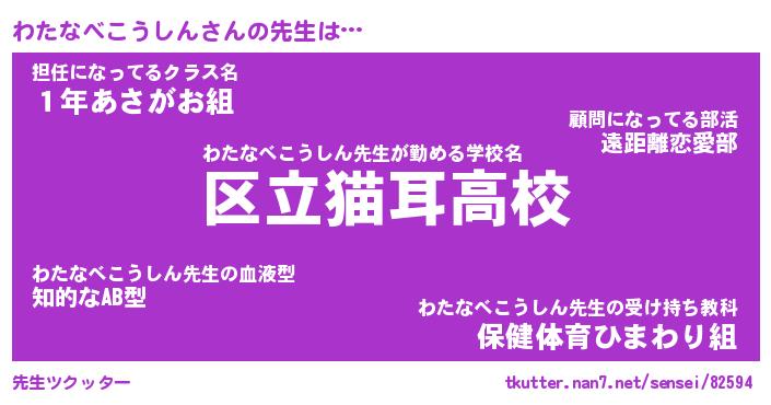 | ポケモン風あだ名 | 『ワタチュウ』『ワタナダネ』 |