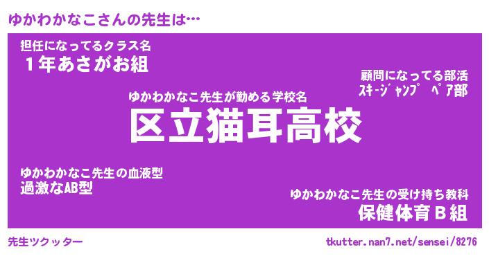 | ヘコむあだ名 | 『ゆかにー』『牛乳』『ゆかお』 |