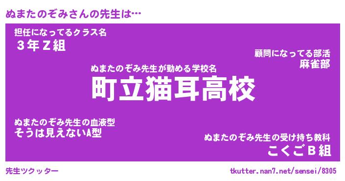 | 自動車の名前っぽいあだ名 | 『ヌマティマ』『ヌスラー』『ヌント』 |