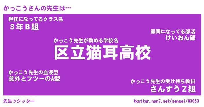 | 意味不明あだ名 | 『ペロリンかっこう』『永久保存かっこう』 |